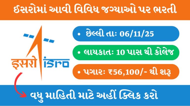 ઈસરોમાં સાયન્ટિસ્ટ, ટેકનિશિયન, ડ્રાઈવર સહિત વિવિધ જગ્યાઓમાં ભરતી, પગાર 56,100 – ISRO Bharti 2025
